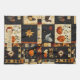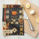 Dieses Küchentuch ist mit einem von Volkskunst inspirierten Patchwork-Muster ausgestattet. Die Herbstpalette ist in Orange, Braun, Gold, Schwarz und Creme gehalten. Die Blöcke zeigen rustikale Motive wie Kürbisse, Vögel, Sterne, Herzen und wirbelnde Weinberge, die alle in einem traditionellen Quilt-Blockbau angeordnet sind. Mit seinem gequälten, altertümlichen Stofflook besticht dieses Muster durch den Charme primitiver amerikanischer und saisonaler Erntethemen. Ideal für Herbstdekor, rustikalen Bauernstil, Kunsthandwerk und volkstümlich inspirierte Designs, die den gemütlichen Herbstgeist feiern.