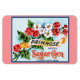 Vintage Kratenkunst mit rot-weißen Primrosen-Blume für Zuckermais auf rosafarbenem Hintergrund.