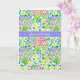 Eine hübsche Muttertagskarte mit "Happy Mother's Day" auf Schwedisch und einem Muster von tiefrosa, tiefblau und gelb Primras, von einem handgemalten Design von Judy Adamson.