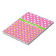 Ein Notepad oder Jotter zum Personalisieren, mit hübschen Mix'n'match-Mustern: Jumbo-weißen Polka-Punkte auf tiefrosa und ein Mini-Print-Muster aus gelben Primaten und grünen Polka-Punkte, auch auf tiefrosa. Teil der Posh & Painterly "Primroses" Kollektion.