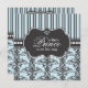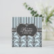 Eleganter schwarzer Damast und gestreiftes Design auf einem babyblauen Hintergrund machen ein schönes Design mit einem französischen Gefühl, das für einen kleinen Prinzen geeignet ist. Diese Einladung lasse den Gästen zu wissen, dass das liebliche Freudenbündel auf dem Weg ein süßer Baby ist und feiert seine Ankunft im schicken Stil.
