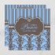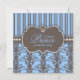 Eleganter schwarzer Damast und gestreiftes Design auf einem babyblauen Hintergrund machen ein schönes Design mit einem französischen Gefühl, das für einen kleinen Prinzen geeignet ist. Diese Einladung lasse den Gästen zu wissen, dass das liebliche Freudenbündel auf dem Weg ein süßer Baby ist und feiert seine Ankunft im schicken Stil.