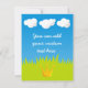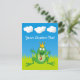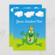 Froschfrosch Cartoon mit Krone. Abnehmbare Hintergrundelemente (Himmel, Gras, Wolken). Eigener Text.