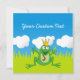 Froschfrosch Cartoon mit Krone. Abnehmbare Hintergrundelemente (Himmel, Gras, Wolken). Eigener Text.