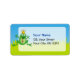 Prinzfrosch Cartoon mit Krone über grünem Gras unter blauem Himmel. Benutzerdefinierte Textfelder für Name und Adresse.
