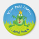 Prinzfrosch Cartoon mit Krone auf grünem Gras unter blauem Himmel. Zwei benutzerdefinierte Textfelder im Kreis.