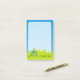 Prinzfrosch Cartoon mit Krone auf Gras und Himmel Hintergrund. Eigener Text.