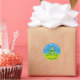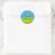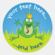 Prinzfrosch Cartoon mit Krone über grünem Gras unter blauem Himmel. Zwei benutzerdefinierte Textfelder im Kreis.