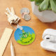 Prinzfrosch Cartoon mit Krone über grünem Gras unter blauem Himmel. Benutzerdefinierter Text auf beiden Seiten.