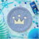 Künstlich blaue Glitzer Platte mit einem Bild einer Krone. Rosa ist ebenfalls verfügbar.