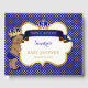 Royal blau & goldfarben mit Kronen und Vintagem Baby. Gold zeigt auf einem königsblauen Hintergrund.