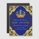 Prince Baby Dusche Save the Date Postkarten mit magnetischem Hintergrund und wunderschöne königsblaue und goldene Krone und wirbelnder Hintergrund. Sie können diese Babydusche des Prinzen leicht anpassen, indem Sie einfach Ihre Daten in den Schriftart Stil und den Wortlaut Ihrer Wahl.