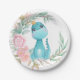 Princess Aqua Dinosaur Pink Peony Baby Dusche Pappteller