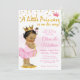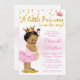 Princess Baby Dusche Einladungen mit einem hübschen afrikanischen amerikanischen Prinzessin-Baby-Mädchen mit einem niedlich rosa Tutu und Perlenkette auf einem hübschen goldenen Funkeln und Diamantboden.