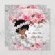 Afrikanisches amerikanisches Baby-Duschmädchen. Prinzessin Winter Wunderland Schneeflocken. Babydusche Niedlich Girl Pink Blüte, Weiße Rose Spitze, Diamond Tiara Crown Kleine Prinzessin "es ist ein Mädchen" Party Einladung. Elegante Events für Frauen, Party Einladungen für alle Altersgruppen, einfach anpassen.