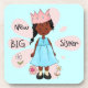 Ein afroamerikanisches Mädchen in einer Prinzessenkrone mit rosa Blume-Hintergrund auf neuen großen Schwestern-T - Shirt, Knöpfen, Totentaschen, Schlüsselketten, Karten, Zeitschriften, Kissen, Gepäckanhänger, Wanduhren und anderen Sachen, die die neue große Schwester zu besitzen hat!