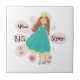 Ein braunes Haarchen in einem hübschen blauen Kleid und Prinzessenkrone mit rosa Blume Hintergrund auf neuen großen Schwesterknöpfen, Knöpfen, Totentaschen, Schlüsselketten, Karten, Zeitschriften, Kissen, Gepäckanhänger, Wanduhren und anderen Gegenständen, die die neue große Schwester Liebe zu besitzen hat!