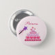 Ein niedlicher Knopf für die Prinzessin an ihrem Geburtstag! Weich rosa Hintergrund mit hübschem Kuchen mit Sternkerzen und Zauberstab.