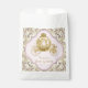 Rosa und goldene Babydusche mit schöner goldener Kutsche auf hübschem rosa und goldfarbenem Hintergrund. Sie können diese niedliche Babydusche-Liebestasche ganz einfach anpassen, indem Sie den gewünschten Text hinzufügen und die Hintergrundfarbe ändern.