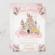 Celebrate your little princess in royal style with this Princess Castle 5th Birthday Invitation, featuring a dreamy fairy-tale castle, soft pink florals, and elegant glitter-style typography.