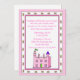 Die Einladung der Prinzessin zum Geburtstag hübscher Mädchen. Die Unterlage ist mit einer hübschen Grafik eines rosa Cartoon Schlosses geschmückt, und ein hübscher, rosa und grüner Blumenrand rundet die Einladung ab. Text in Rosa ist bereit, für den besonderen Tag Ihrer kleinen Prinzessin zu personalisieren.