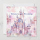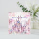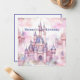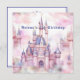 Schönes Aquarellbild eines rosa und lila, eleganten Prinzessin-Geburtstagsschlosses mit silberner Prinzessenkrone und Lavendelsteinen.