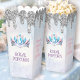 Prinzessin Winter Geburtstagsparty Royal Popcorn Gefallen Schachtel mit einem Tropfen und Kronen "silber Glitzer". Personalisieren Sie den Text einfach. Ideal für jeden Geburtstag eines kleinen Mädchens im Winter. Kate Eden Art