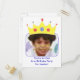 Niedliche Prinzessin Geburtstagsfeier Einladung Postkarten, mit einer Krone, die für Ihr Kind bereit ist, auf dem Bild zu tragen. Ersetzen Sie das Foto durch ein Foto Ihres Kindes mit diesem Vorlagendesign. Ändern Sie den Text in Ihre Geburtstagsparty-Details auf der Vorderseite und auch auf der Rückseite.