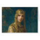 Prinzessin von Troy mit langen Leisten, die eine juwelenbesetzte Krone tragen. Auf einem Tisch bei der Hand ist ein goldenes Kuchen. Vintage Arthur inspirierte Kunstmalerei.