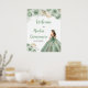 Dieses Begrüßungsschild aus Quinceanera besticht durch eine schöne Prinzessin in einem schlauen, grünen Ball mit Blumenarrangements. Das ist perfekt für eine Quinceanera Geburtstagsparty.
