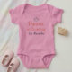 A sweet pink bodysuit with the fun, sparkly phrase "Princess in Training" and a delicate crown outline. Personalized with the name "Lily Alexandra," this is a perfect gift for a new baby girl or for a themed photo shoot.