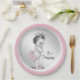 Prinzessin-Baby-Dusche Teller mit niedlicher Vintager Prinzessin mit rosa Kruffelhosen und Hausschuhen auf hübsch rosa Perlenhintergrund mit elegantem Prinzessentext. Diese niedlichen, rosa und silberfarbenen Baby-Duschpapier-Teller können mit Texten im Schriftart-Stil und in der Farbe Ihrer Wahl angepasst werden. Sie können auch die Hintergrundfarbe ändern.