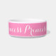 Mittlere, weiße Schüssel mit einem kräftigen, heißen rosa Akzent mit Prinzessentext. Passen Sie diese Schüssel an oder kaufen Sie, wie es ist. Wählen Sie aus einer mittleren oder großen Schüssel.