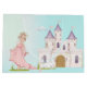 Eine niedliche Prinzessin auf blauem Hintergrund mit einer Prinzessin-Burg. Der Name kann für Ihre eigene Geschenktasche geändert werden.