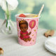This adorable pink and gold princess-themed 8 oz cup wrap features a sweet baby girl with a crown, balloon, gold shoes, and matching hearts and crown accents. Designed in a soft pastel palette, this wrap adds the perfect touch to royal birthday parties, baby showers, and princess-themed celebrations.