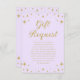 Princess royal birthday gift request card in gold and purple.