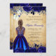 Vintage Prinzessin Elegant Royal Blue Gold Floral Butterfly Quinceañera Ruhige Einladung