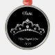 Dieser Baumschmuck wird in runder Form mit einem glänzenden hübschen Imitat Diamant Tiara-Druck gezeigt, mit rotem Band und silber gestreift. Passen Sie dieses Element mit Ihrem persönlichen Seitennamen, Datum und Namen an, verwenden Sie diese Vorlage. Lizenziertes Bild