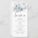 Printable Dusty Blue Florals Hochzeitsmenü. Verfügbar in digitaler Form und gedruckt. Eine informelle Set-Typografie in schwarz für die Hauptüberschrift Menü ergänzt die Erholung des Textes, die Sie leicht personalisieren können, mit schönen herbstfarbenen Blume und Gräsern an der Spitze.