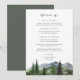Celebrate your special day with this 5x7 wedding menu card from the Timberline collection by Redwood & Vine Design Co. Featuring a tranquil green mountain and forest illustration with clean, modern typography, this card beautifully complements a rustic or winter wedding. Available printed or as a digital download, it’s ideal for nature-inspired weddings, forest venues, or elegant outdoor receptions. Easily customize to suit your dinner or buffet offerings.