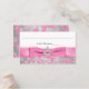 Dieses elegante, pinkfarbene, silbergraue, blumengeschmückte Glitzer-Damasketmuster Bat Mitzvah Platzkarte oder Begleitkarte hat einen Hintergrund aus verschiedenen weißen Schneeflocken darauf und ein bedrucktes rosa Band und Bogen mit einem silbergrauen Stern von David Brooch, der der unten gezeigten Bat Mitzvah-Einladung entspricht. Bitte kontaktieren Sie niteowlstudio@gmail.com , wenn Sie Änderungen wünschen.