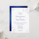 Elegantes Design mit blauem Text auf Weiß mit einer weißen und blauen Blumengrenze und einer kontrastierenden Prinzessin blauen Aquarellunterlage. Wenn Sie eine schlichte Unterlage wünschen, können Sie alle Elemente mit den Tools löschen, die in Zazzles Anpassungsmenü zur Verfügung stehen. Bitte stellen Sie sicher, dass Sie diese Vorlage mit Ihren Hochzeitsinformationen personalisieren, und stellen Sie sicher, dass alle Details vollständig und genau sind. Wenn Sie Anregungen, Wünsche, Fragen oder weitere Unterstützung wünschen, können Sie sich mit uns in Verbindung setzen.