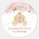 Prinzessin Carriage Floral Pink und Gold Gefallen Runder Aufkleber