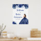 Dieses Begrüßungsschild aus Quinceanera besticht durch eine schöne Prinzessin in einem marineblauen Ball mit Blumenarrangements. Das ist perfekt für eine Quinceanera Geburtstagsparty.