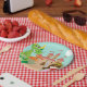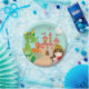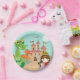 Ein lächelnder Drache, Schloss, ein Ritter und eine niedliche kleine Prinzessin, die ihr eigenes Schild und Klinge tragen. Ein koordinierenSet Servietten und Einladungen verfügbar. Eine andere Version für Jungen ist auch verfügbar