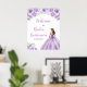 Dieses Begrüßungsschild aus Quinceanera besticht durch eine wunderschöne Prinzessin in einem staubigen lila Ball mit Blumenarrangements. Das ist perfekt für eine Quinceanera Geburtstagsparty.