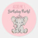 Prinzessin Elephant Tiara Pink Kind's Birthday Runder Aufkleber