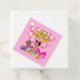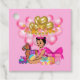 Illustration eines hübschen, in Rosa gekleideten kleinen Mädchens mit gebrannten Haaren mit rosa Bögen und Prinzessin Tiara. Umgeben von Spielzeug und mit rosa und goldenen Ballons oben mit Sternen und Mondbanner. Niedliches Geschenk für die erwarteten Eltern, Babydusche, Geschlechterenthüllung oder Geburtstagsgeschenk.