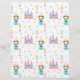 Gemusterte Zeitung mit einer Prinzessin in einem blauen Kleid, einem Schloss, Spiegeln, Herzen und Sternen. Auf der einen Seite ist der Hintergrund weiß, auf der anderen Seite braun. Sie können den Farbhintergrund ändern, wenn Sie weitere Einstellungen vornehmen. Illustriert und entworfen von Patricia Alvarez.