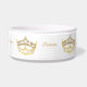 Diese Krone mit Herzverschönerungen, für eine Königin oder eine Prinzessin, wurde von Kristie Hubler, für einen Hund hergestellt, "Queenie", im Jahre 2001 und wurde dieser Hundeschüssel hinzugefügt